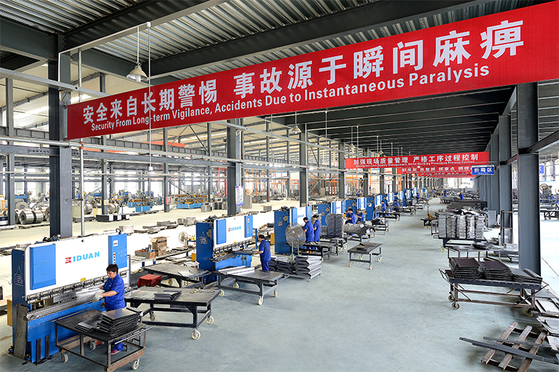 工厂拥有先进的自动送料纵剪、横剪生产线4条;数控全自动喷涂生产线6条;大型激光自动切制设备6台;智能数字机器人上下料、柔性折弯、多头点焊加工生产线6条;钣金、冲压、点焊集群设备;大型、中型辊轧成型生产设备等数十套。拥有职工900多人,具有中、高级工程师职称的80人,管理人员60人。